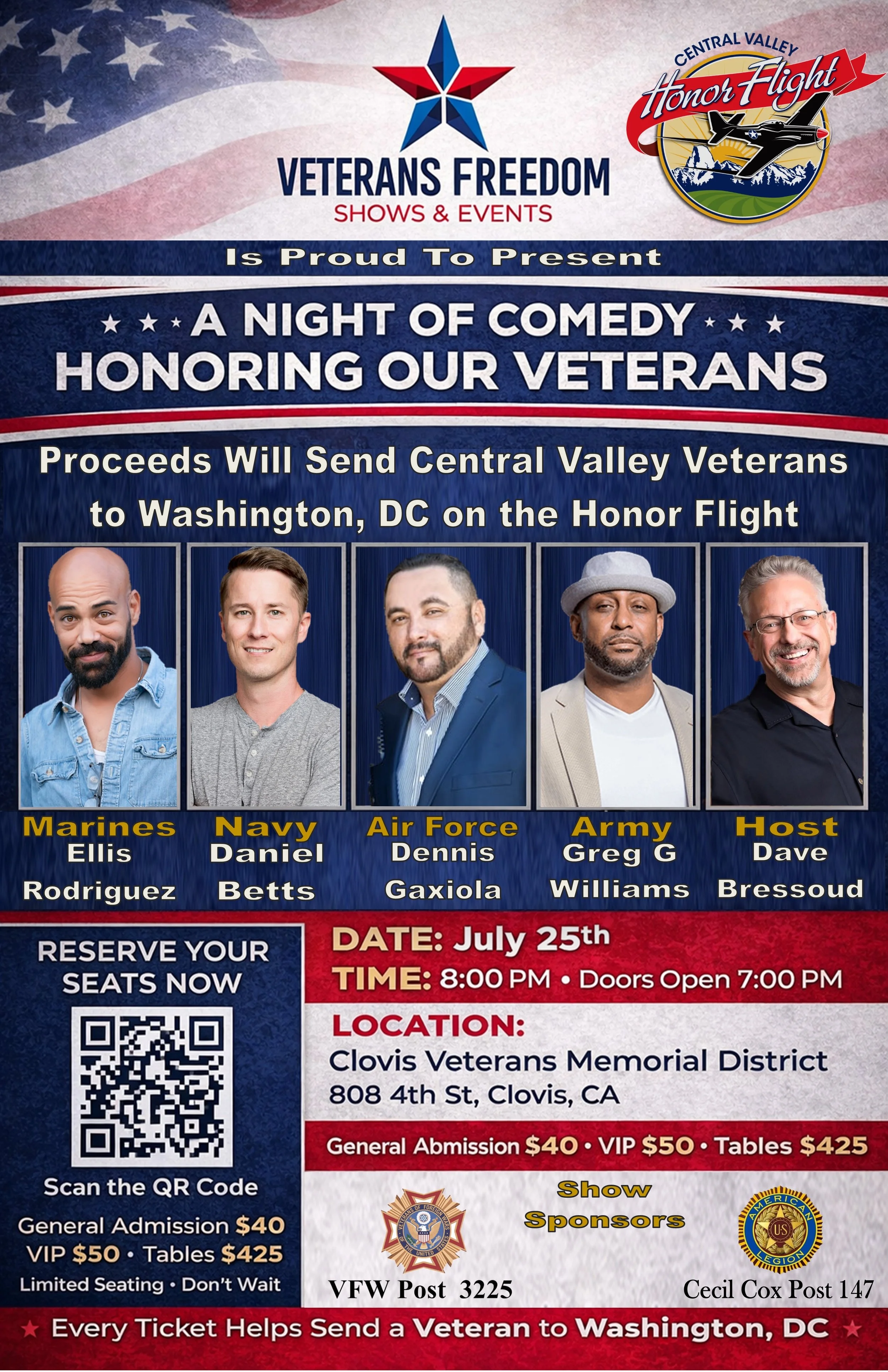 The 1st show was GREAT, all who attended had a fantastic time. All comics are prior service Army, Marine, Navy and Air Force. We are currently accepting reservations for the 2nd annule show. Please sign up below.